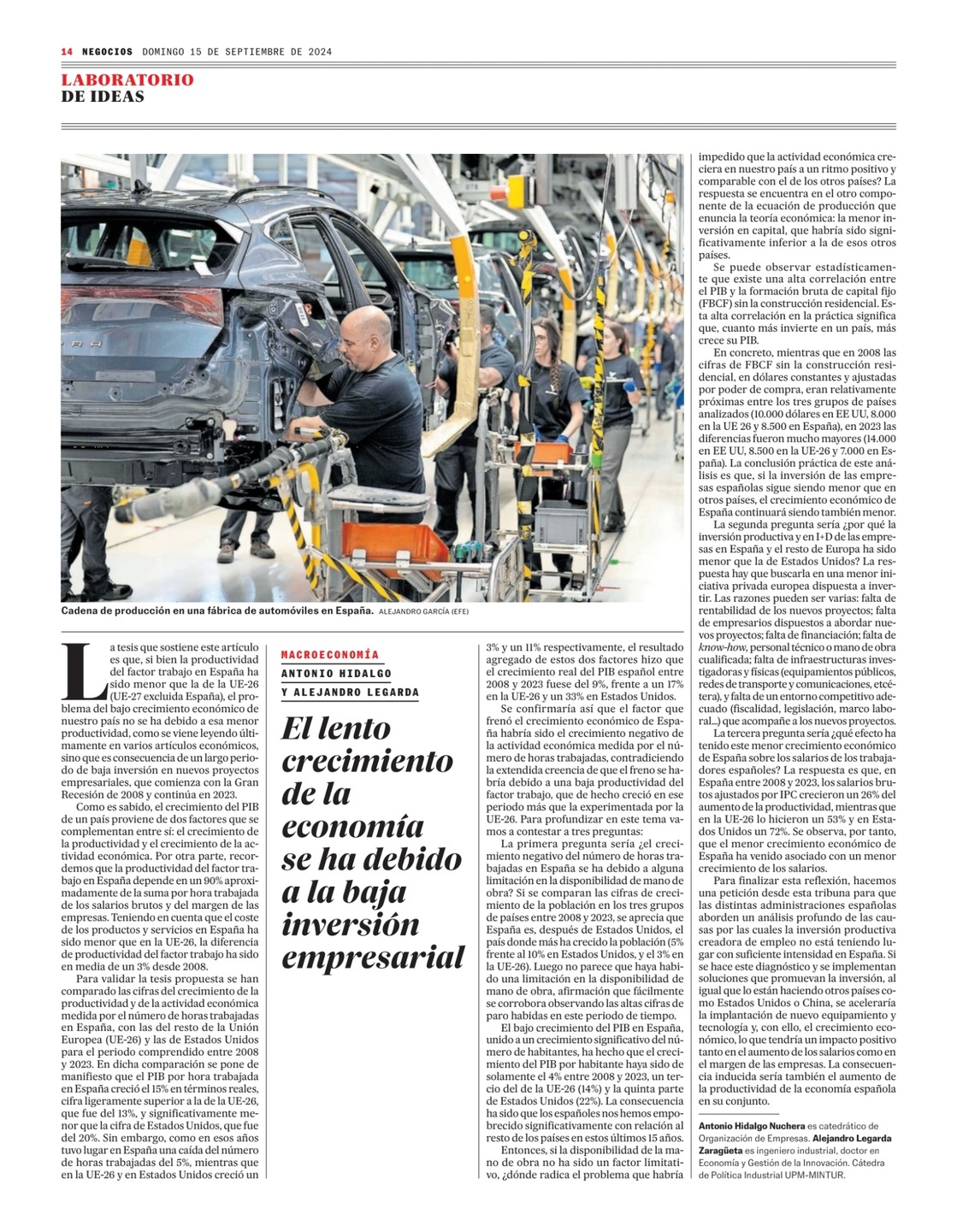 El lento crecimiento de la economía española se ha debido a una baja inversión empresarial
