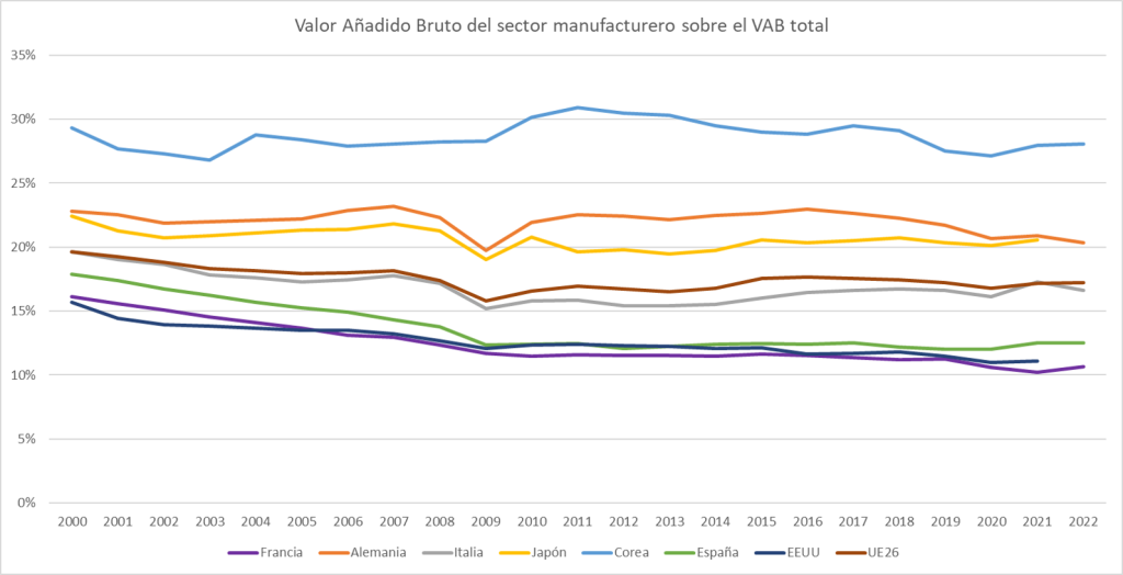 En este apartado se incluyen una serie de análisis relativos a la industria manufacturera española en comparación con otros países de nuestro entorno y con la Unión Europea.
